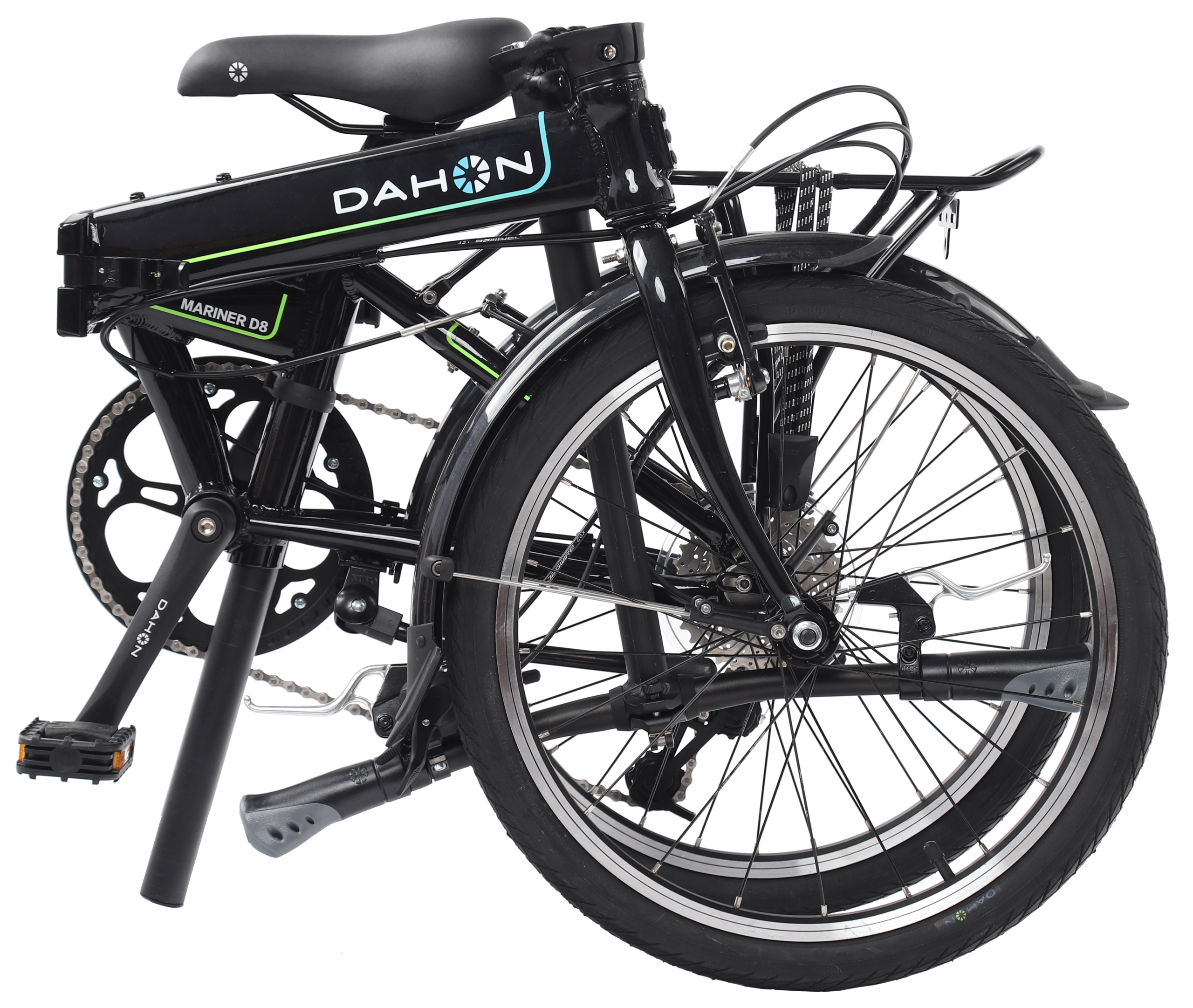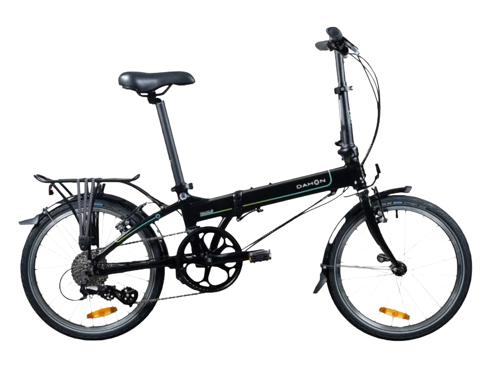 | Other | Front Hub DAHON Compact Aluminum 20 Rear Hub Aluminum Cassette, Aluminum Sealed Bottom Bracket Sealed Bearing Shifters DAHON 8-Speed Trigger Shifter Handlebar 6061 Aluminum Flat Bar, 580 mm Wide Grips DAHON Ergo Comfort Headset Fusion, Zero Stack, Cartridge Bearing brakes Aluminum 110 mm V-Brakes Brake Levers DAHON 3 Finger Aluminum Saddle DAHON Ergo Comfort Seatpost DAHON 6061 Aluminum, 33.9 mm x 580 mm Kickstand Lightweight Aluminum Other Aluminum Rack / full wrap fenders |