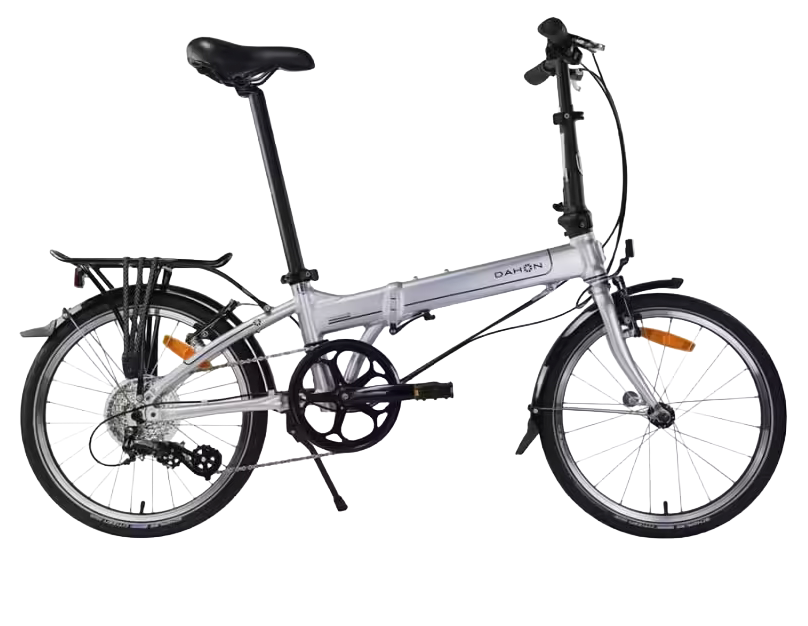 | Other | Front Hub DAHON Compact Aluminum 20 Rear Hub Aluminum Cassette, Aluminum Sealed Bottom Bracket Sealed Bearing Shifters DAHON 8-Speed Trigger Shifter Handlebar 6061 Aluminum Flat Bar, 580 mm Wide Grips DAHON Ergo Comfort Headset Fusion, Zero Stack, Cartridge Bearing brakes Aluminum 110 mm V-Brakes Brake Levers DAHON 3 Finger Aluminum Saddle DAHON Ergo Comfort Seatpost DAHON 6061 Aluminum, 33.9 mm x 580 mm Kickstand Lightweight Aluminum Other Aluminum Rack / full wrap fenders |